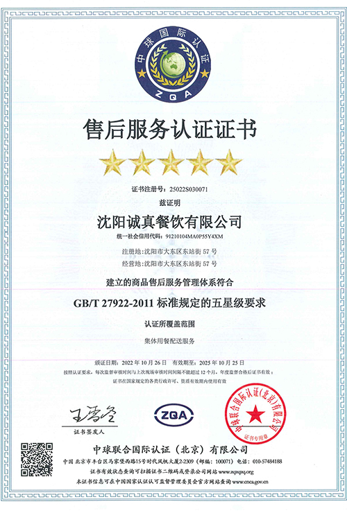 售后服務認證證書
